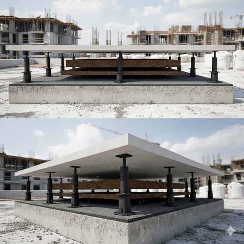 在一住宅大樓的屋頂隔熱工程中,我們提供的架高地板系統不僅解決了隔音問題,還降低熱傳導(室內溫度下降15度C以上),更提升了整體設計美感。